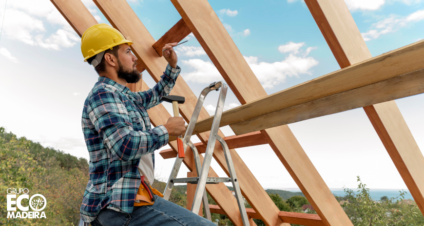 Existem diversos tipos de vigas no mercado, mas um dos modelos mais tradicionais e utilizados são as vigas de madeira. Esses produtos servem pra o madeiramento do telhado, que nada mais é do que a combinação e o encaixe de peças que formam a estrutura do telhado.